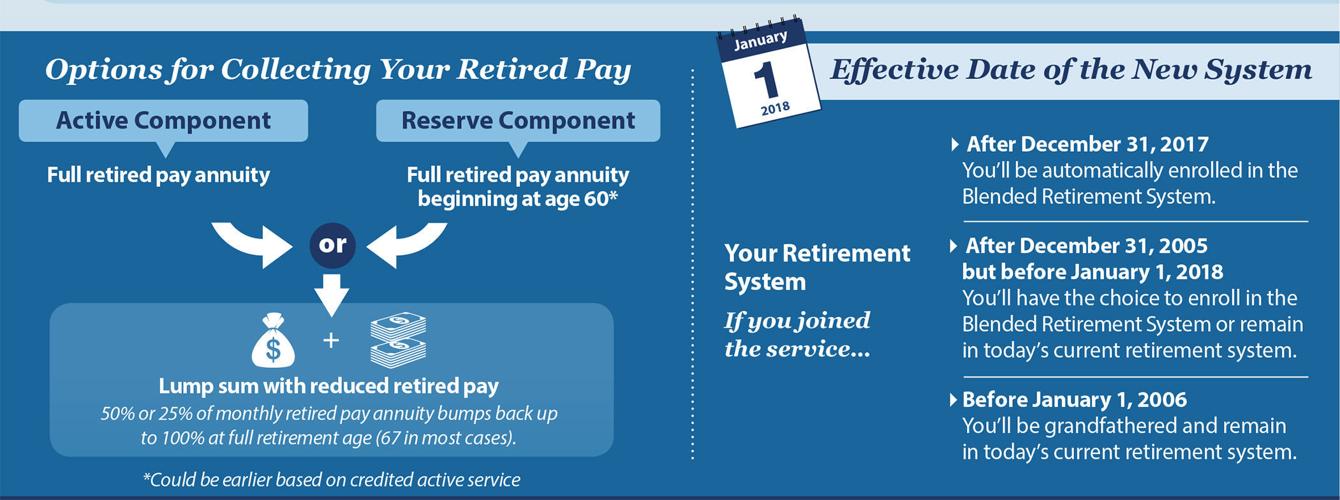 Selecting a lump sum option will reduce your monthly retired pay until age 67 at which time your retired pay will be restored to the full amount. In the following screens select High 3 Legacy retirement next at the bottom of the results select go back to my information and choose Blended Retirement System from.