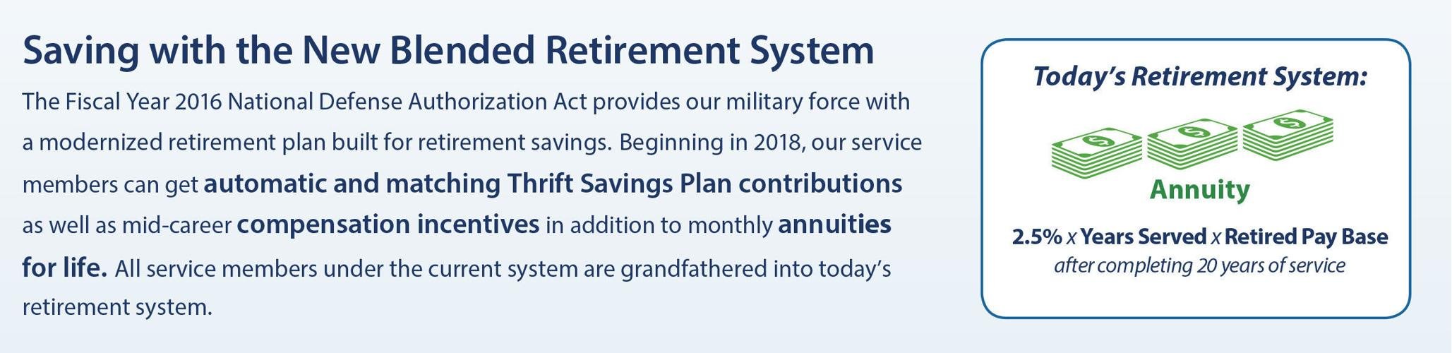 Explore Our Annuity Products To Find The Perfect Fit For Your Wants Needs In Retirement. The Blended Retirement System BRS. Once you input your information youll see what the BRS retirement calculator estimates for your future retirement benefits.