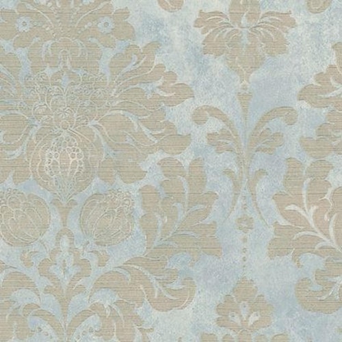 Blue Gray Large Floral Damask Wallpaper Gold Pearl Metallic Etsy Uk
